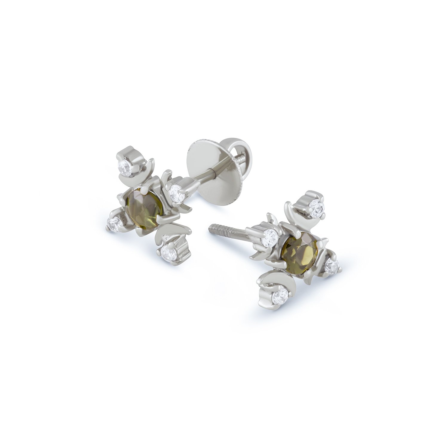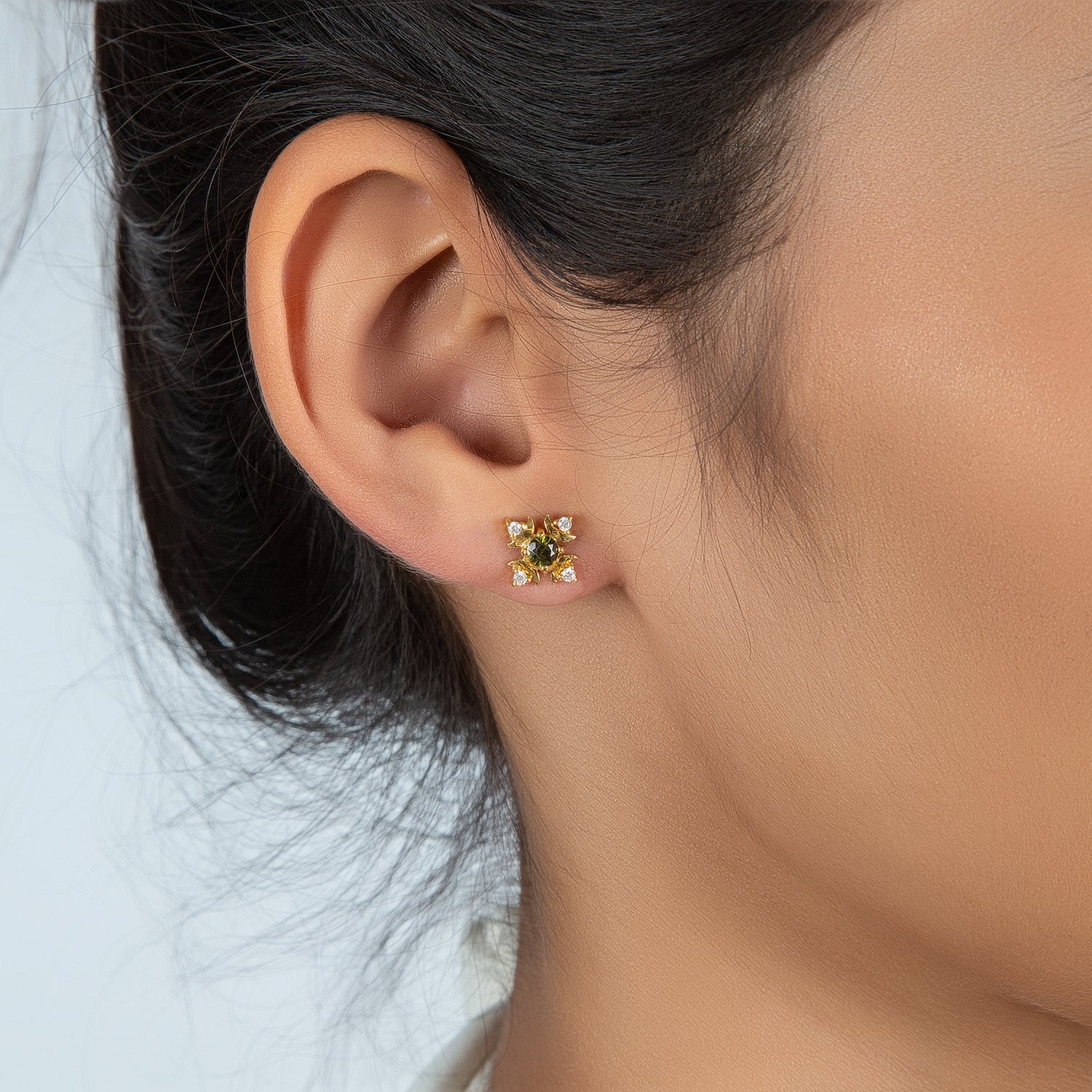 Diopside and White Topaz Studded Earstuds